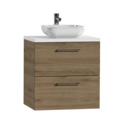 Tiger Badkamermeubel Studio 60 Cm Chalet Eik Met Keramische Waskom Hoogglans Wit En Ronde Grepen