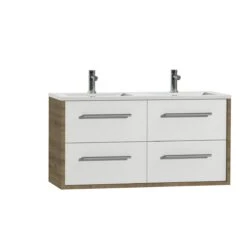 Tiger Boston Badkamermeubel 120 Cm Chalet Eiken Met Greep Chroom En Wastafel Dubbel Wit