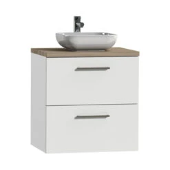 Tiger Badkamermeubel Studio 60 Cm Naturel Eik Met Keramische Waskom Hoogglans Wit En Profielgrepen