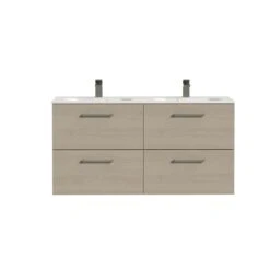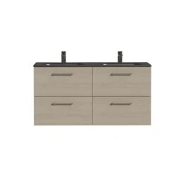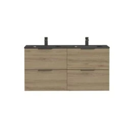 Tiger Studio Badkamermeubel 120 Cm Chalet Eiken Met Wastafel Dubbel Polybeton Mat Wit Greep Rvs Plat