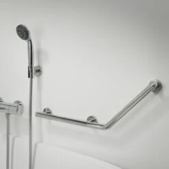 De Tiger Boston comfort & safety veiligheidsgreep 135° rechts van de accessoire serie Boston Comfort & Safety is uitgevoerd in glanzend RVS, en is ook verkrijgbaar in geborsteld RVS. Desgewenst is er een antislip grip voor deze greep los verkrijgbaar. Veiligheidsgrepen zijn er in 30 centimeter, 45 centimeter, 90 centimeter of met een hoek van 90 graden. De Tiger accessoires zorgen voor een stijlvolle toevoeging aan je badkamer. Dit artikel is TUV gecertificeerd. Dit product kan uitsluitend worden bevestigd met de meegeleverde schroeven. Er zijn van deze serie diverse sanitair accessoires verkrijgbaar, voor meer comfort en veiligheid in de badkamer en toilet, geheel in de bekende Boston stijl.