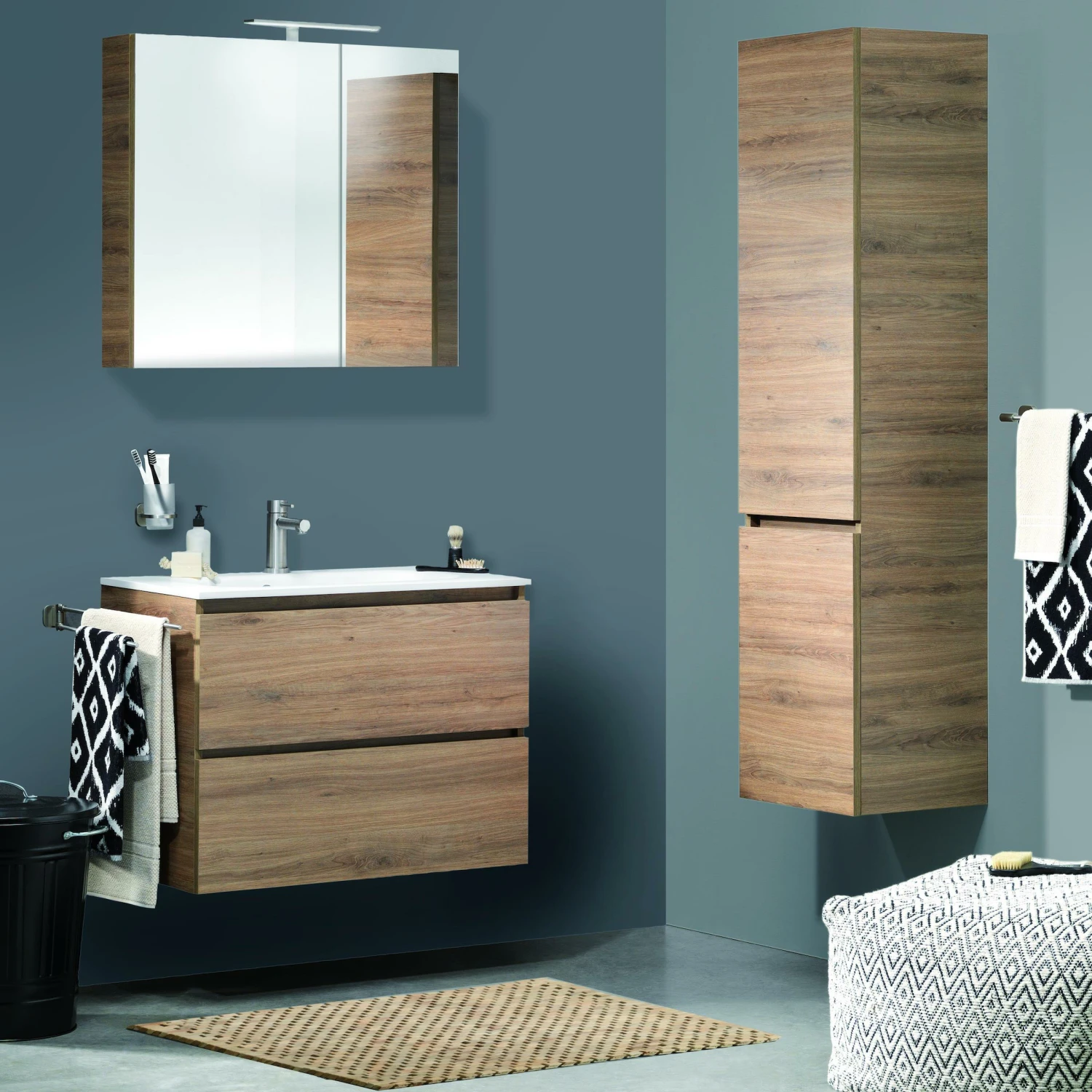 Karlo is een strak vormgegeven badkamermeubel met greeploze laden. Je eigen stijl bepaal je zelf door te combineren met de verschillende kleuren wastafels en onderkasten.