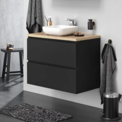Karlo is een strak vormgegeven badkamermeubel met greeploze laden. Je eigen stijl bepaal je zelf door het meubel te combineren met verschillende kleuren kranen, pluggen en accessoires naar je eigen smaak. (Exclusief)
