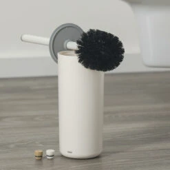 De Tiger Toiletborstelhouder Urban Wit Staand is uitgevoerd in de kleur mat wit en grijs en wordt geleverd met drie eindkapjes voor toevoeging aan de steel van de borstel. Deze decor elementen, in de kleur mat wit, licht eiken en grijs, maken het mogelijk een subtiel kleuraccent toe te voegen waardoor het artikel eenvoudig is aan te passen aan de gewenste stijl. Deze serie bevat tevens een wandhangend toiletborstelhouder naast een groot aantal aanvullende accessores voor de badkamer en de toiletruimte. Alle in dezelfde stijl. De artikelen uit de serie zijn ook in de kleur mat zwart verkrijgbaar.